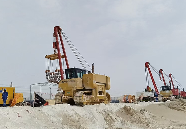 阿聯(lián)酋地區(qū)氣候炎熱,夏季氣溫常高達(dá)50攝氏度以上,加之沙塵環(huán)境復(fù)雜,對(duì)工程設(shè)備的性能提出了高要求。中蘇海工履帶吊管機(jī)以其強(qiáng)大的動(dòng)力系統(tǒng)、高效的散熱設(shè)計(jì)以及堅(jiān)固的結(jié)構(gòu),完美適應(yīng)了這些挑戰(zhàn),確保了施工的高效性和連續(xù)性。設(shè)備在高溫環(huán)境下運(yùn)行穩(wěn)定,操作靈活,極大地提升了施工效率,贏得了現(xiàn)場(chǎng)施工人員的一致好評(píng)。