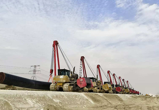 中蘇海工吊管機(jī)集群?jiǎn)⑦\(yùn),高溫戰(zhàn)力全開助建沙特石油動(dòng)脈